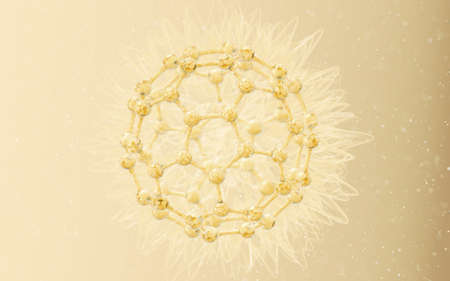 Cell structure with golden background, 3d rendering. Computer digital drawing.