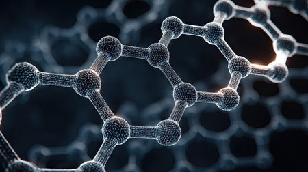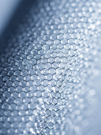 Macro shot of a single layer of graphene, showcasing its exceptional electrical conductivity and transparency.