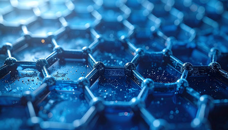 Zoomed-in photograph of graphene particles, focusing on the atomic arrangement for an innovative background.