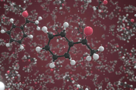 Molecule of acetophenone, ball-and-stick molecular model. Science related 3d rendering