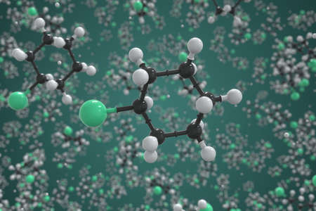 Bromocyclohexane molecule, ball-and-stick molecular conceptual model. Scientific 3d rendering