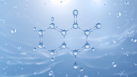 hennotannic acid molecular structure, 3d model molecule lawsone, structural chemical formula view from a microscope