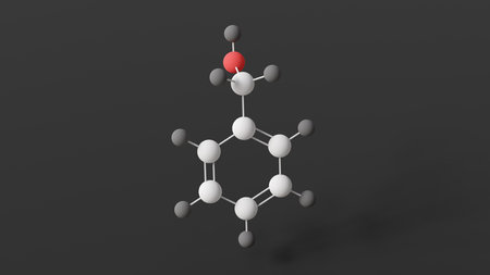 benzyl alcohol molecule, molecular structure, aromatic alcohol, ball and stick 3d model, structural chemical formula with colored atoms