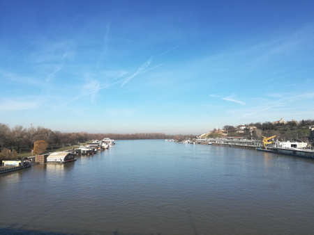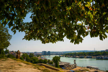 Beautiful view of the park near the fortress Kalemegdan over the river Savva in Belgrade, Serbia, on a sunny day