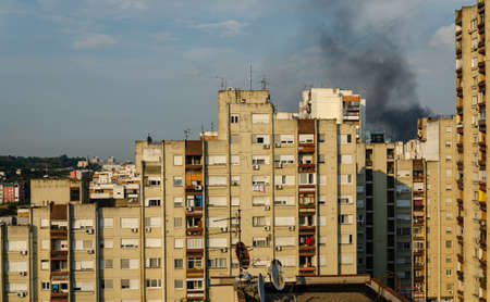 BELGRADE, SERBIA - DECEMBER 30, 2018: High rise buildings from the district of Blok 21 in Novi Beograd, a traditional communist housing ensemble with a brutalist style. .
