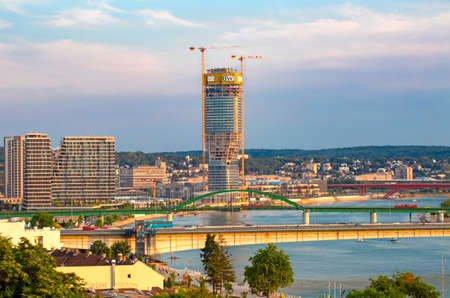 Belgrade, Serbia - 11 July 2017 : The view of municipality New Belgrade and the Sava river