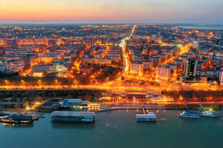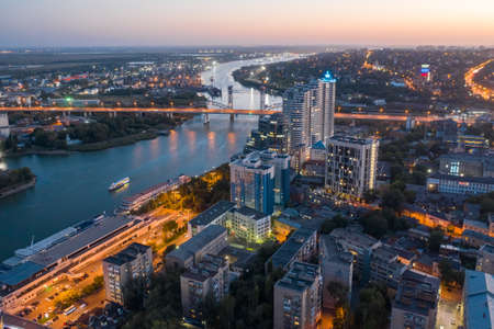 evening panorama of the center of Rostov on Don, a view of the Don River and local attractions