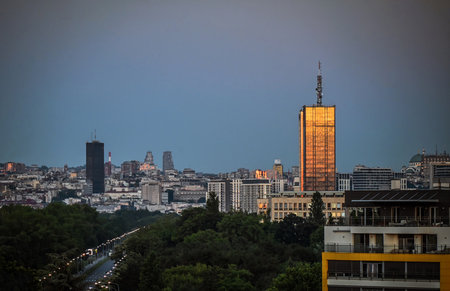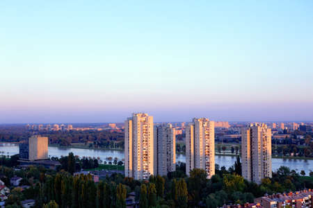 Aerial view of Belgrade downtown in the evening. The capital of Serbia. Europe.
