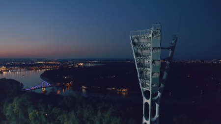 North Bridge and traffic roundabout in Voronezh, evening cityscape aerial view from rooftop, dramatic colours
