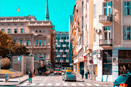 Bucharest, Romania, 8 November 2020 - Old buildings on Nicolae Balcescu (previously known as Gheorghe Magheru) boulevard in Bucharest, Romania, in a sunny autumn day