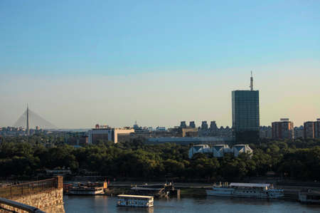 Belgrade, Serbia - July 5, 2021: Belgrade cityscape view from Kalemegdan park hot summer day.