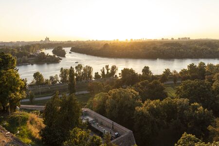 BELGRADE, SERBIA - AUGUST 12, 2019: Amazing sunset view of Belgrade Fortress and Kalemegdan Park in the center of city of Belgrade, Serbia