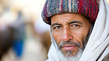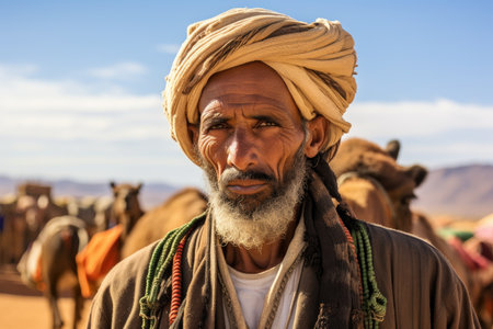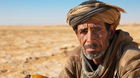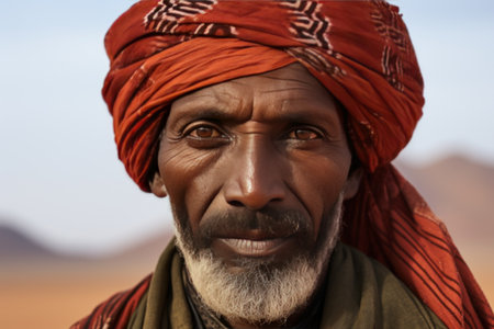 Spectacular Portrait of An Ethnic Man in Traditional Headscarf Amidst Desert Wonders