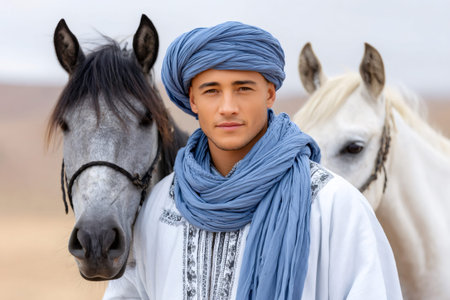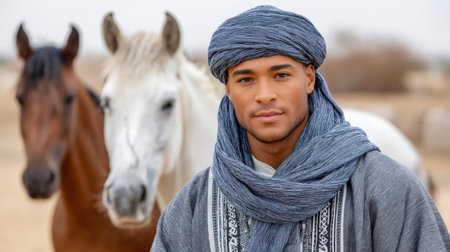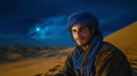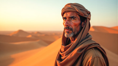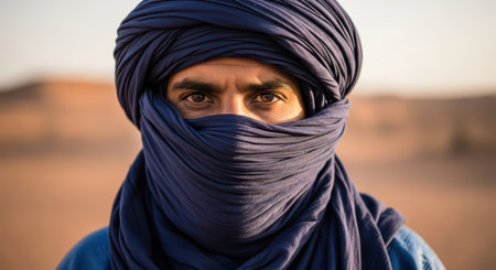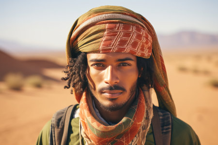 Spirit of the Sands: A Cultural Journey with an Ethnic Man in a Traditional Headscarf