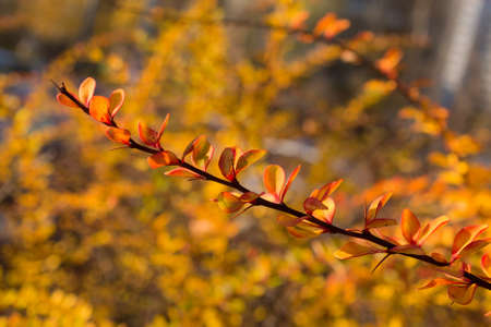autumn branch of barberry closeup in the foreground
