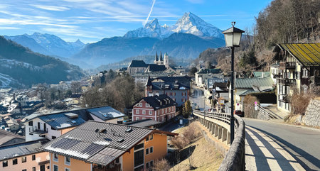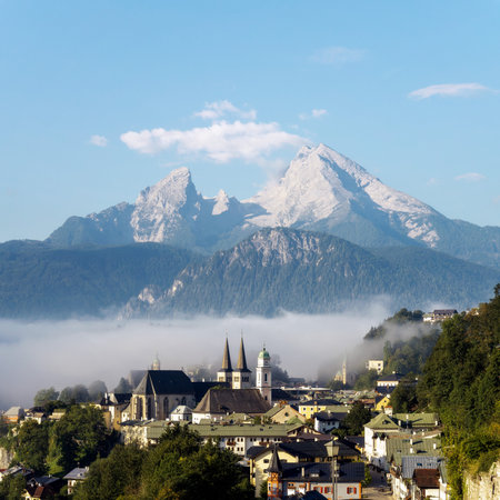 Historic town of Berchtesgaden with Mount Watzmann in the background. National park Berchtesgadener Land, Upper Bavaria, Germany.