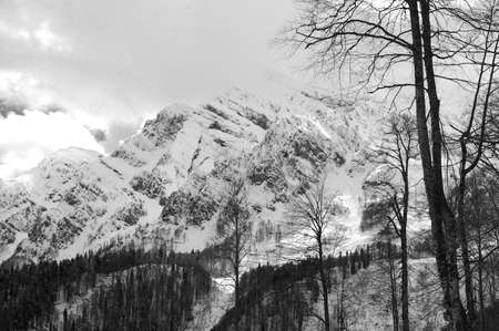 Sky resort, mountains view, black and white
