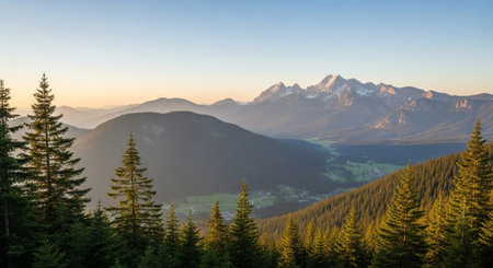 Scenic mountain view at sunset with layered mountain ranges