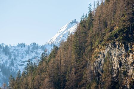 Alps Mountains in Fussen, Bavaria, Germany. Rock range with snow above in springtime.