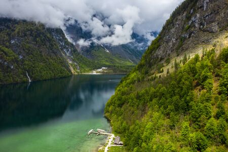 Lake Obersee, Berchtesgaden, Bavaria, germany. Nature landscape, reserve national park. Spectacular view Alps mountain and Lake Obersee. Konigsee panorama.