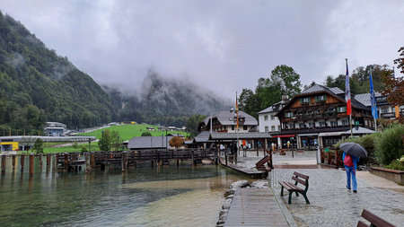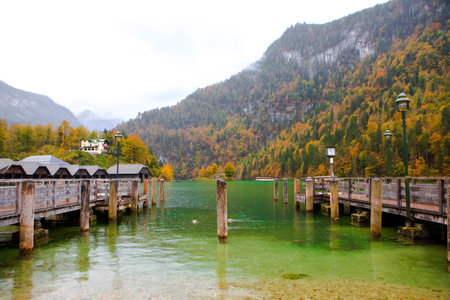 Berchtesgaden, Germany - November 1, 2018: Scenery view surrounding the port of St.Bartholomew's Church at the Konigsee Lake in Berchtesgaden, Germany.