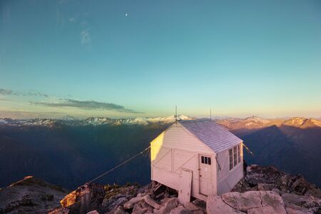 Alpine shelter for mountaineers and skiers to take refuge in the wild Alaskan mountains.