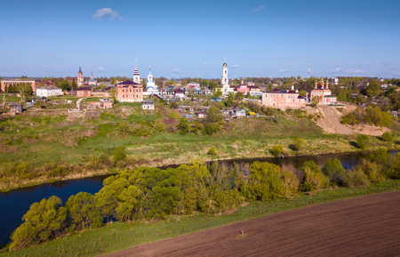 Beautiful ancient Russian city of Files in the Vladimir region View from the height