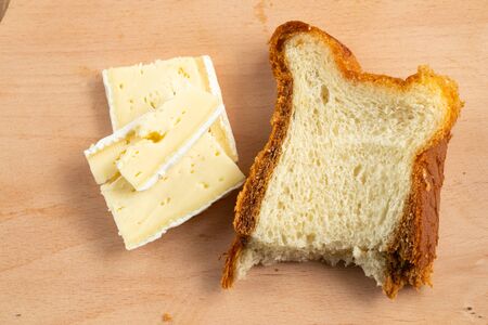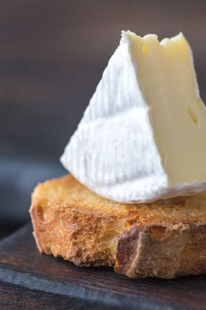 Toast with Camembert cheese on the wooden board