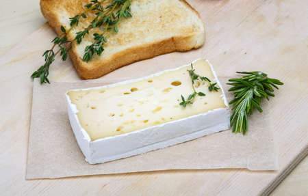 Soft brie cheese with rosemary, thyme and toast bread