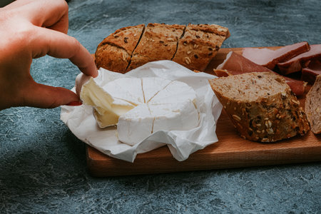 Soft camembert cheese appetizer over board