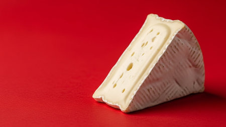 White cheese on a red background. Shallow depth of field.