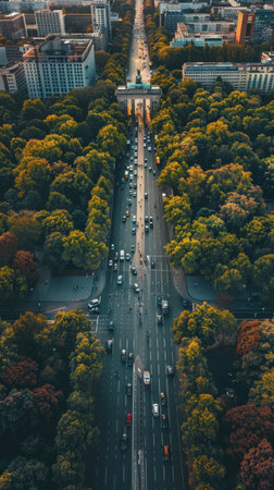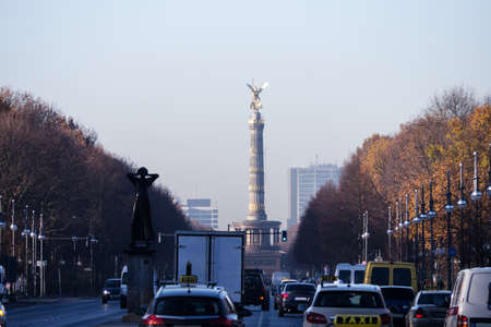 Aerial top down view of Berlin Victory Column and roundabout traffic. Germany
