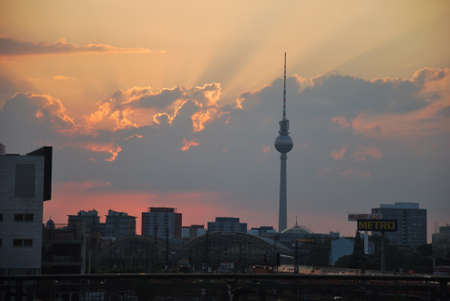 View of the Berlin TV Tower (Fernsehturm) , in Mitte, Berlin, Germany.