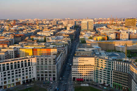 The beautiful aerial view of Berlin buildings during the sunset in Germany