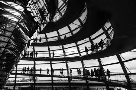 BERLIN, GERMANY, 20 AUGUST 2020: Silhouette of people walking around the dome of the Reichtsag
