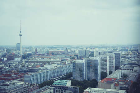 BERLIN, GERMANY - MAY 08, 2014: Aerial bird eye view of the city of Berlin Germany vintage