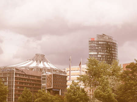 BERLIN, GERMANY - MAY 09, 2014: Sony Center and Die Bahn headquarters in Potsdamer Platz vintage