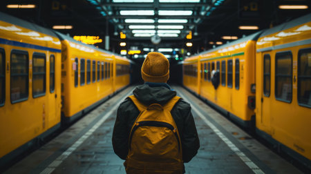 Traffic in subway. Young man is waiting for subway. Berlin, Germany