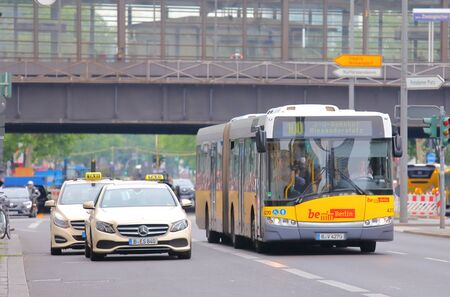 Berlin Germany - June 10, 2019: Taxi and bus drive thorough downtown Berlin Germany