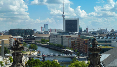 Berlin, Germany: TV tower and the Cathedral in Berlin. Top view of the German capital, the landscape of the Central district of Berlin from the roof of the Bundestag. Berlin, Germany