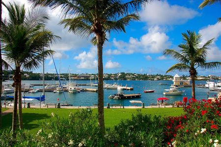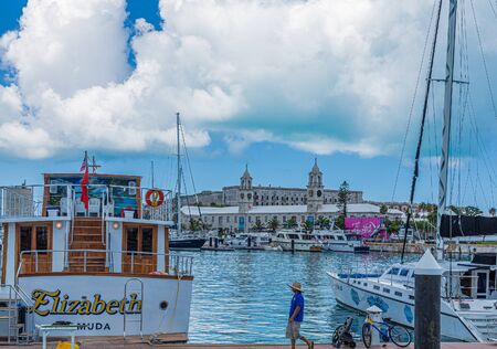 HAMILTON, BERMUDA - July 12, 2017: Hamilton, in Bermuda has a blend of British and American culture. Its Royal Naval Dockyard combines modern attractions and boating with history.