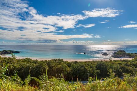 HORSESHOE BAY, BERMUDA - MAY 26 - A panoramic view of Horseshoe Bay Beach on May 26 2016 in Southampton Parish Bermuda.