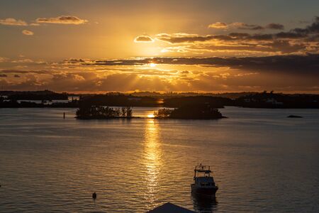 Silhouettes on the ocean at sunset, on the island of Bermuda