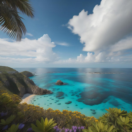 Beautiful seascape with turquoise ocean and blue sky. generative ai