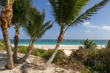 Palm tree in Bas du Fort beach in Guadeloupe, French west indies. Lesser Antilles, Caribbean sea