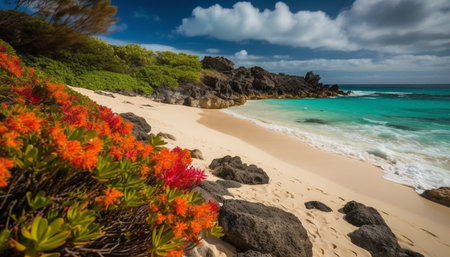 Tranquil sunset over multi colored waters at idyllic Caribbean resort generated by artificial intelligence