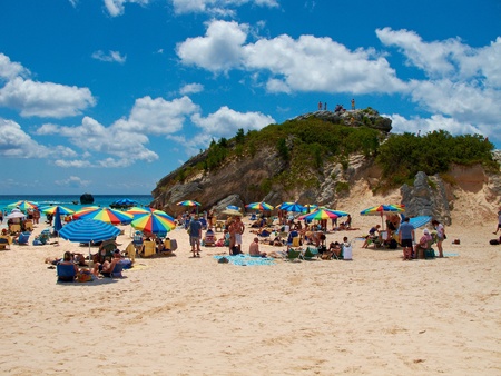Tourists enjoying the Sun and Water on a Bermuda Beach 06/11