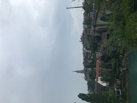 Bern, Switzerland - July 26, 2019: Panoramic view of the Aare river at sunny summer day.