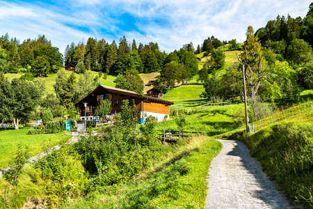 Summer time countryside panoramic landscape in Switzerland near Habkern village
