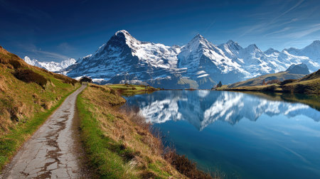 beautiful alpine panorama, idyllic lake Bachalpsee and swiss mountains, bernese oberland.
